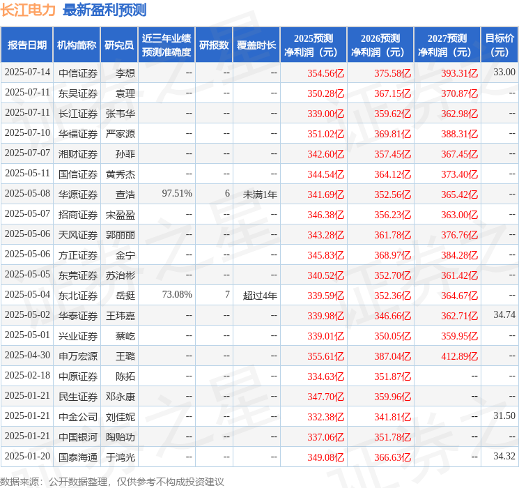 中国银河证券股份有限公司陶贻功,梁悠南,马敏近期对长江电力进行研究并发布了研究报告《长江电力2025年半年度业绩快报点评:2502业绩稳健增长中金财富,拟出资建设葛洲坝航运扩能工程》,给予长江电力买入评级。