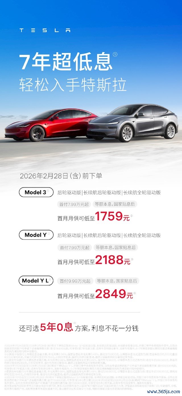 特斯拉同期还针对Model Y、Model Y L推出7年超低息政策,Model Y首月月供低至2188元,Model Y L低至2849元。