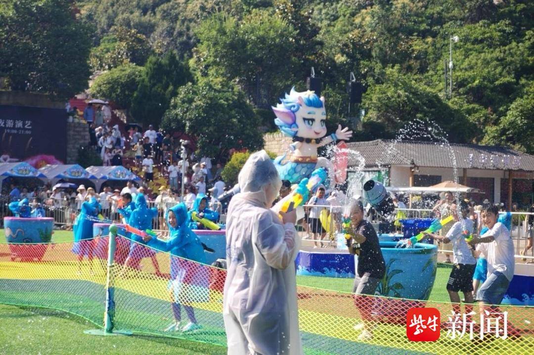 每天下午三点半,渔湾景区珍珠瀑广场瞬间化作欢乐的海洋。全新打造的水缸与软网战场宛如一座“水上堡垒”,游客们组队结盟,手持水枪,展开激烈对战。水柱在空中交织成绚丽的“水网”,欢呼声、尖笑声不绝于耳。无论是小朋友还是大朋友,都在这场清凉激战中玩得不亦乐乎,夏日的燥热被一扫而空。“每年都会带着孩子来几趟渔湾,感受天然的清凉,今年是第五个年头了,已经成为一种习惯。”水枪大战现场,市民张女士在一旁边看孩子玩耍边说。