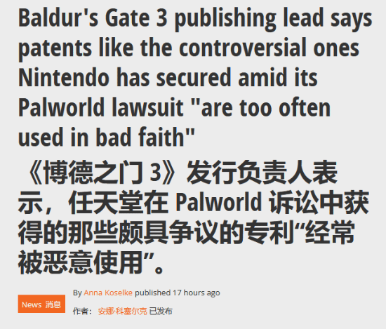 前几日我们曾报道,任天堂最近在美国获取了两项与《幻兽帕鲁》案高度相关的新专利技术。而其中一个专利引起了广泛关注金猪配资,专利分析师Florian Mueller甚至批评称这项专利“不仅令人恼火,更是令人震惊”,因为它可能威胁到整个游戏行业的创造力。甚至连拉瑞安工作室的发行总监也发表了自己的看法。