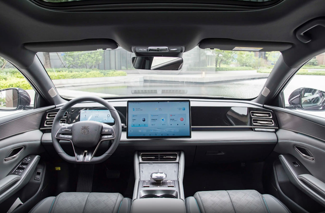 秦L DM在内饰方面,延续了家族式设计风格,内饰的颜色搭配也是恰到好处,全液晶仪表的尺寸为8.8英寸,显示效果细腻,功能也是较为丰富,可以时刻观察车辆信息,中控屏幕的尺寸为15.6英寸,屏幕还支持自动旋转模式,车机系统采用DiLink智能网联系统,支持车联网,4G网络,OTA升级,语音呼醒,语音识别控制系统,应用商店等功能。