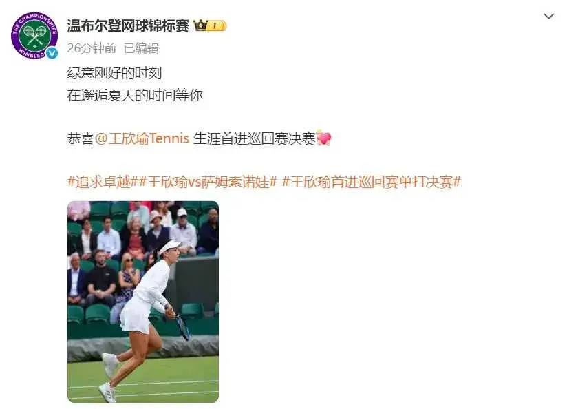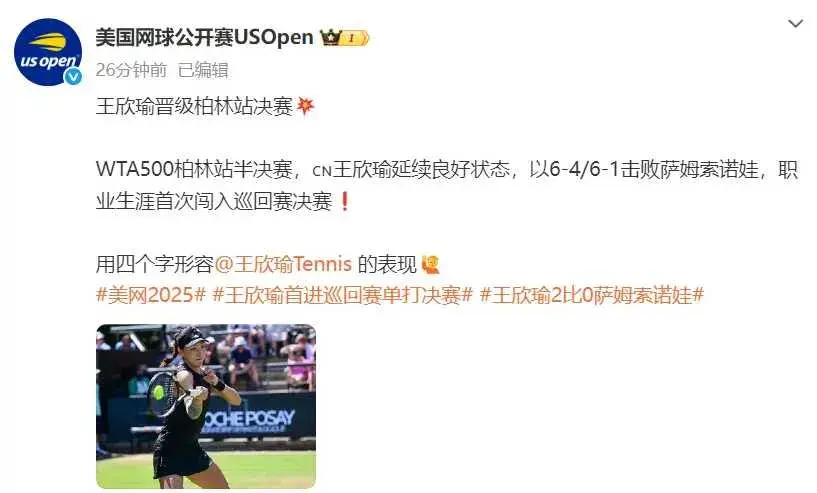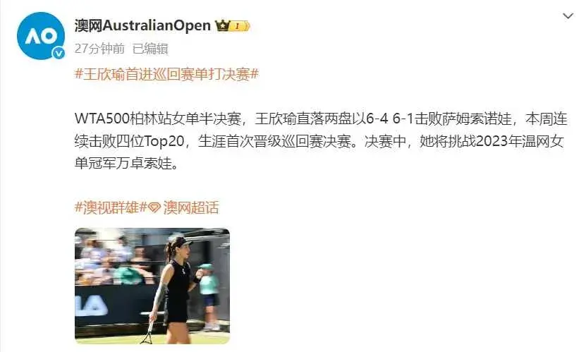 在王欣瑜创纪录地打进决赛之后,这一次不是三大满贯,而是四大满贯齐聚,就连此前一直保持沉默的澳网也终于没忍住给予报道。